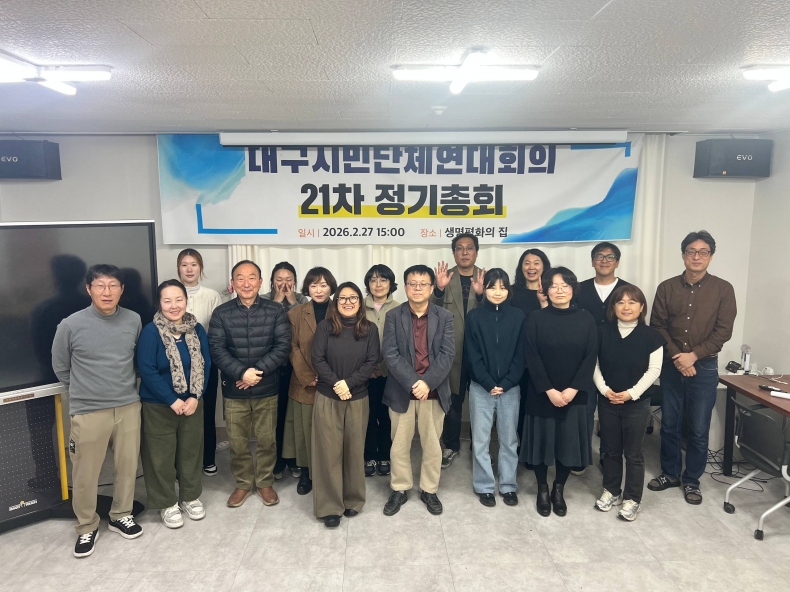 2026년 대구시민단체연대회의 제21차 정기총회 *일시: 2026년 2월 27일(금) 오후 3시~ *장소: 생명평화의 집 *참석: 최현진 사무국장, 정군자활동가 |