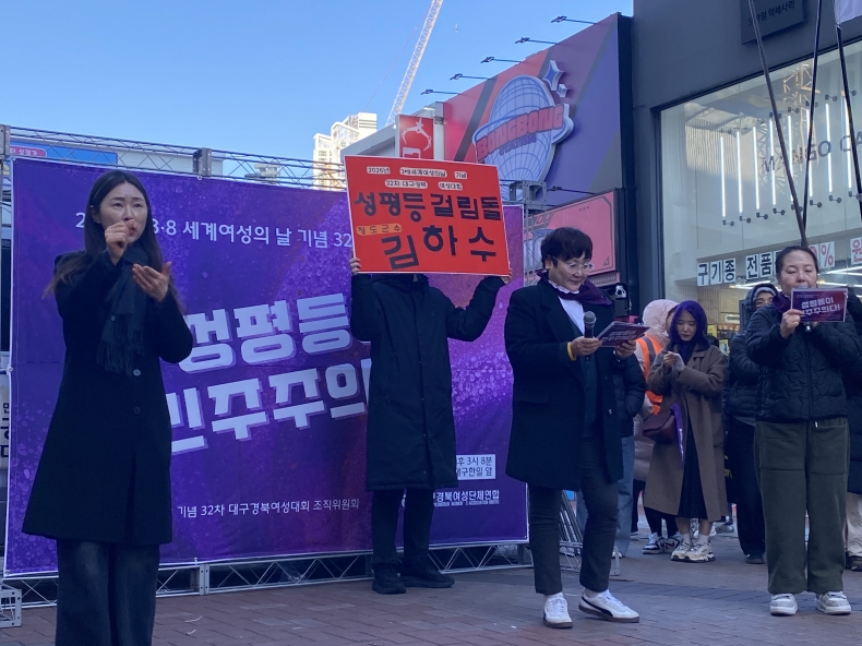 2026년 세계여성의날 기념 제32차 대구경북여성대회 일시: 2026년 3월 7일 오후 3시 8분~ 장소: CGV대구한일 앞