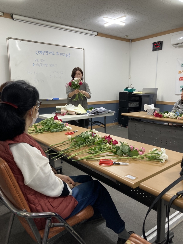 ▶일시: 4월 23일(화) 14:30~15:30 ▶장소: 대구여성장애인연대 교육실 ▶대상: 여성장애인 10명 ▶내용: 생화 꽃다발 만들기