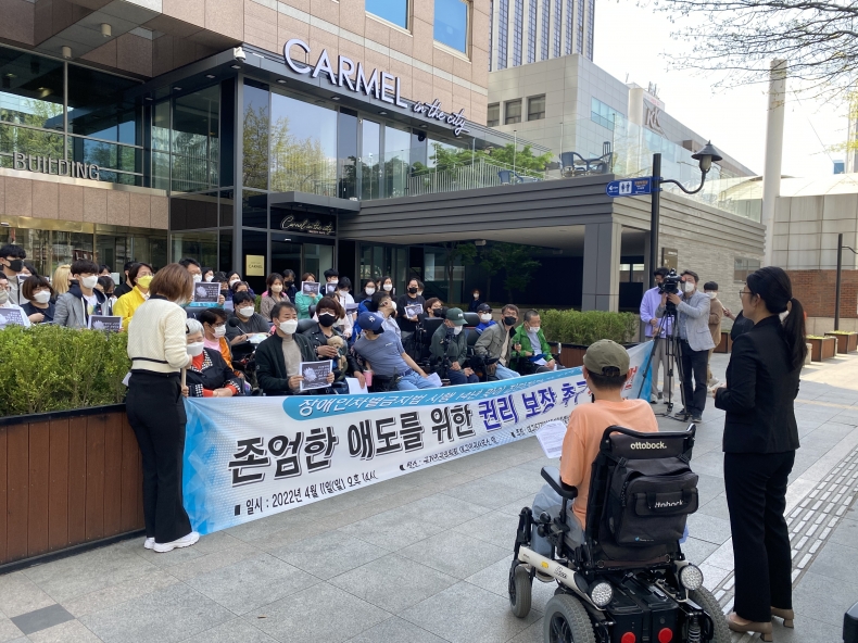 장애인차별금지법 시행 14년 맞이 집단진정 및 지역사회 제언 기자회견 존엄한 애도를 위한 권리 보장 촉구 기자회견 일시: 2022. 4. 11(월) 오후 2시 장소: 국가인권위원회 대구인권사무소 앞 주최: 대구15771330장애인차별상담전화네트워크, 420장애인차별철폐대구투쟁연대