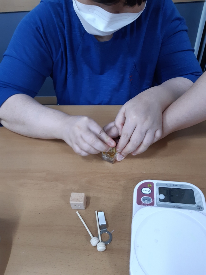 2022년 장애인복지분야 지방보조금 - 장애인 취미생활 교실 [내츄럴 에코 아로마 교실] 5/24 (화) 10시 내츄럴 에코 아로마교실 B반 3회차로 향기로운 디퓨져를 만들었습니다. 화차를 거듭할수록 능수능란하게 작업하는 참여자 여러분의 모습에 즐거움이 가득합니다. 다음 주 4회차는 꿀미스트 만들기입니다. ~~